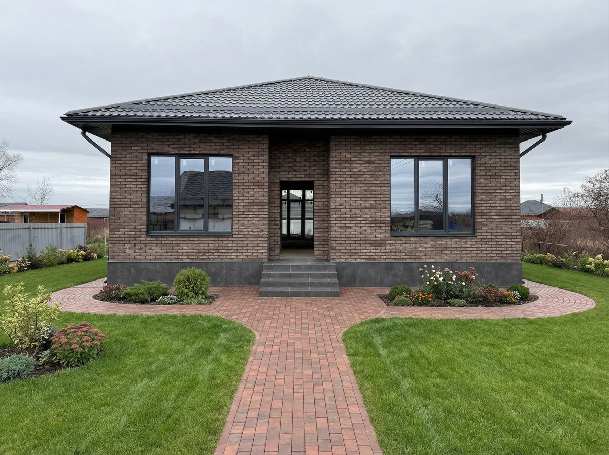 На выставке в Краснодаре к нам подходили партнеры, делились не только впечатлениями о кирпиче, но и фотографиями своих построенных объектов 🏠 Не можем не поделиться и с вами. 🧱 На объекте: Винтаж 1 НФ (коричневый с темными прожилками) На фото немного пофантазировали, как будет выглядеть коттедж с уже готовым благоустройством, цоколем и ступенями. Ведь всегда нужно смотреть комплексно и представлять дом, готовый к семейному проживанию.