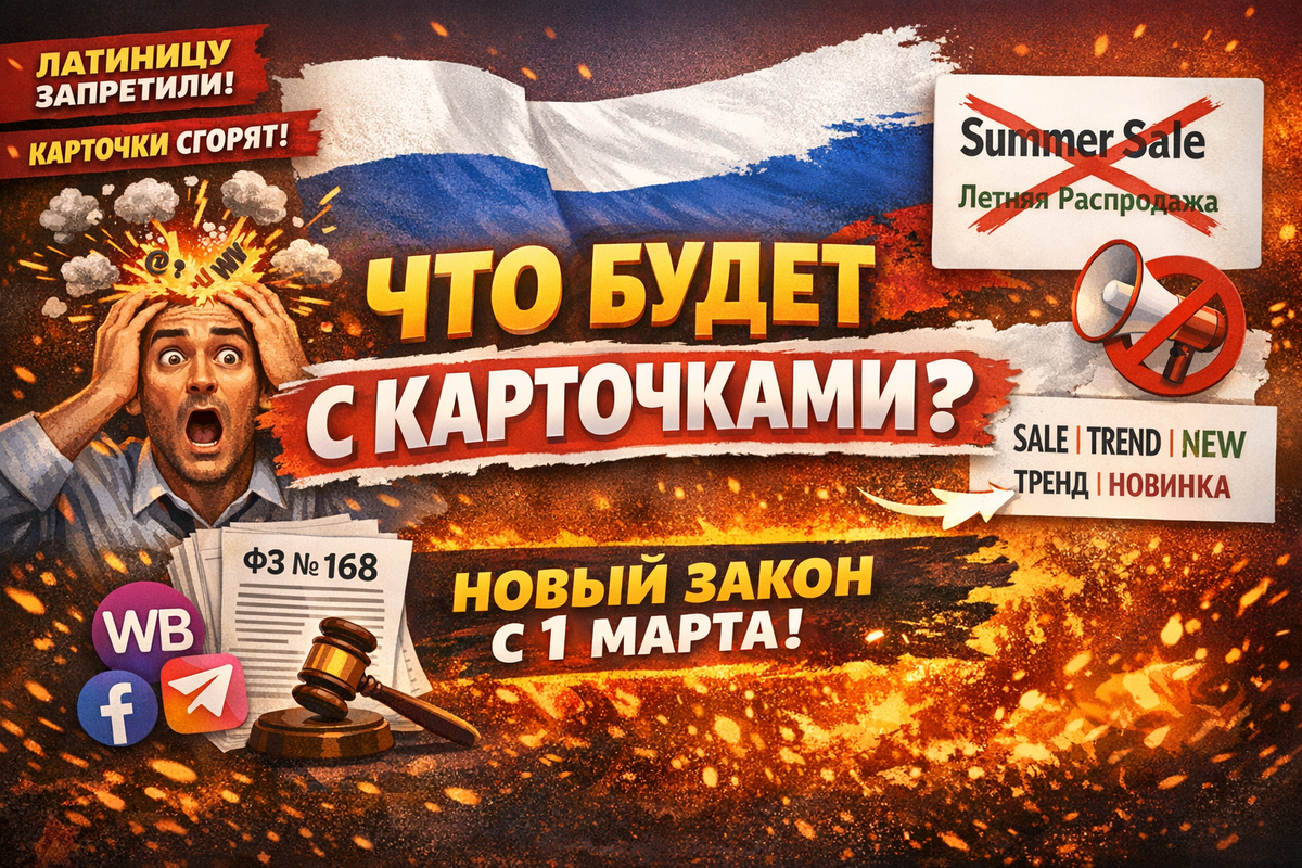 Если вы сегодня заходили в чаты селлеров или тематические каналы, там наверняка паника. 🤯 Еще бы! С 1 марта вступает в силу нашумевший Федеральный закон № 168-ФЗ. В народе его называют «законом о защите русского языка». Новость разлетелась мгновенно: «Латиницу запретили!», «В описании нельзя использовать английские слова!», «Карточки сгорят!». Стоп. Давайте без истерик. Я изучил официальные разъяснения Wildberries и сам закон. Спойлер: удалять карточки не нужно. Но кое-что придется поправить, чтобы не нарваться на проблемы. Читайте внимательно, чтобы ваши товары не ушли в бан, а рекламный бюджет не сгорел зря. Этот вопрос мне задали 100 раз за последние два дня. Ответ короткий: С карточками товаров — НИЧЕГО. Описание, характеристики, Rich-контент, фото — всё остается как есть. Закон не требует переделывать наименования товаров, если они написаны латиницей или содержат иностранные слова. Ваша витрина не пострадает. Закон бьет по рекламе, а не по магазину. Запомните это и выдохните. 😮