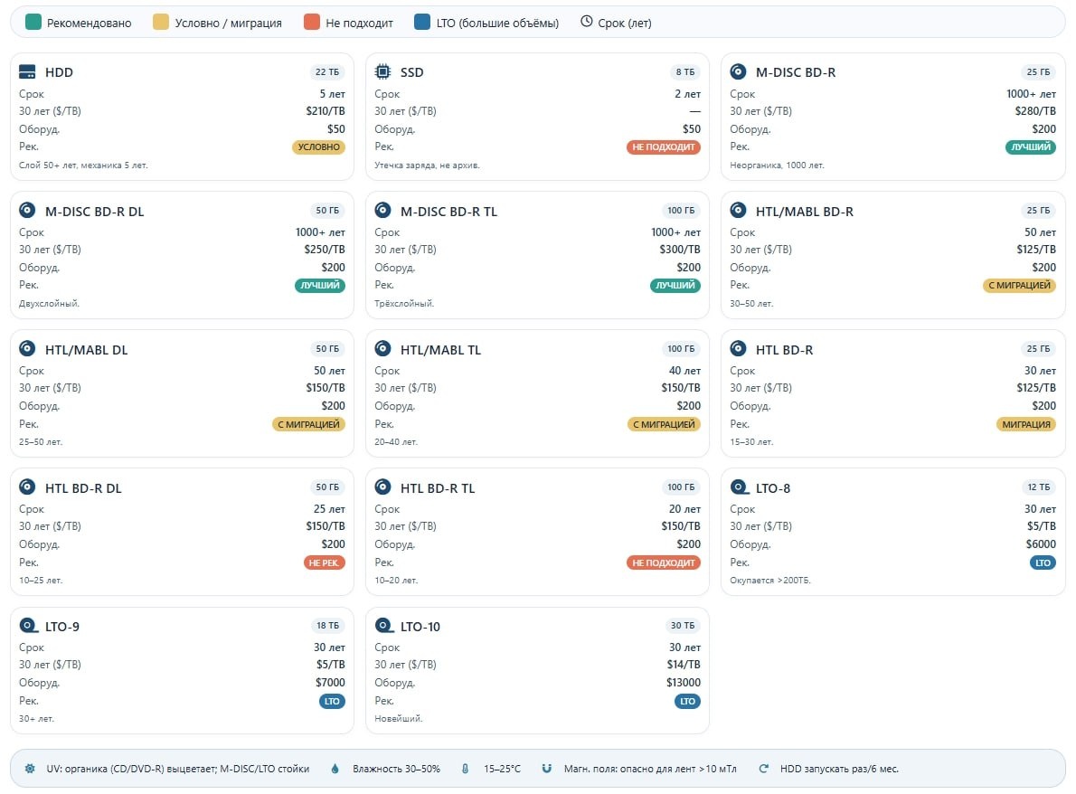 не сгорит. Спорить о том, нужно ли это, бессмысленно. Нужно, если данные важны. Что выбрать? 150+ ТБ данных и лишние $10.000 — ваш выбор LTO. Денег совсем нет — DVD-R GOLD как временное решение. Для всех остальных — M-Disc. 📱 Telegram | 🌐 ВК | 📲 MAX