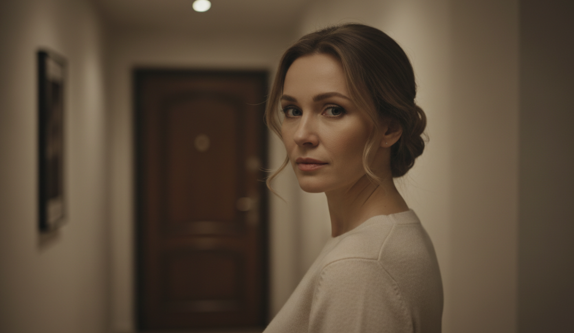 Однажды вечером, когда Дмитрий задержался, Анжела пришла к Кириллу. Полина уже собиралась ложиться — прошла мимо комнаты и услышала голоса. Остановилась не намеренно — просто хотела сказать спокойной ночи.