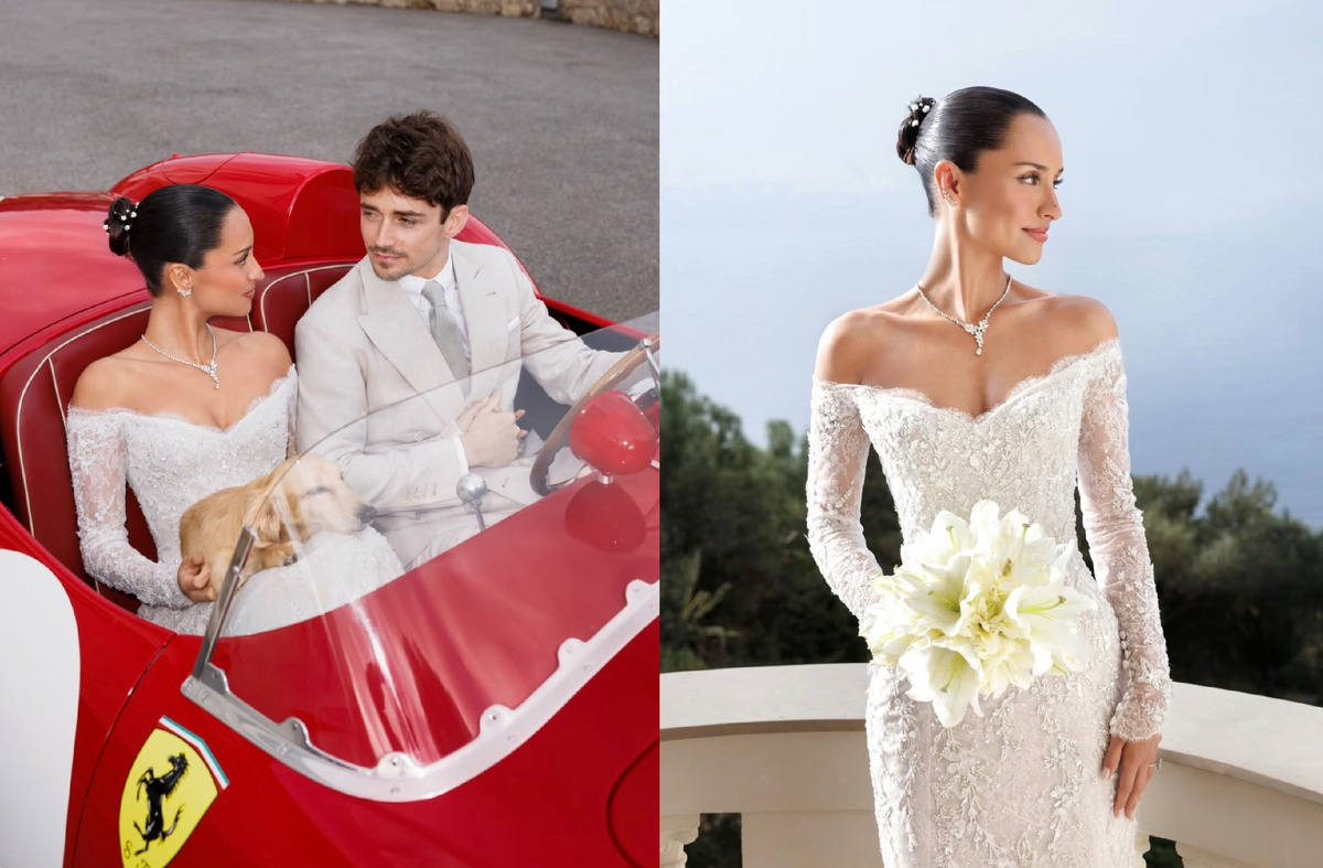 28 февраля 2026 года в мэрии Монако на Роке состоялось бракосочетание Шарля Леклера, звезды Формулы 1 и пилота команды Ferrari, одного из самых ярких и узнаваемых гонщиков своего поколения, и Александры Сен Мьё, модного блогера и модели, чьи социальные сети давно стали ориентиром для поклонников эстетики интеллектуального минимализма. Церемония прошла без красной дорожки и громких анонсов. В зале только самые близкие, за окнами Средиземное море и белый свет конца зимы. Пилот Ferrari выбрал для этого дня светлый костюм с безупречной посадкой. Александра появилась в платье австралийского бренда Paolo Sebastian. Платье было выполнено из французского кружева шантильи, вырез лодочкой, тонкая работа с объемными цветами и бабочками. В ткань были вышиты инициалы пары и дата свадьбы. Деталь почти интимная, заметная только тем, кто подходит ближе. Украшения от Graff добавили сияния. Прическу создала Лори Занолетти, макияж невеста выполнила самостоятельно. Образ получился выверенным и очень мини