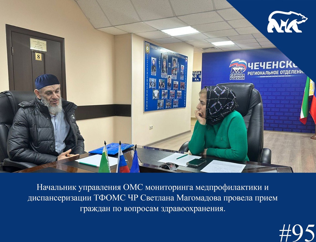 А. Медведева в Чеченской Республике прошел прием граждан по вопросам здравоохранения. ⠀ ✅Сегодняшний прием провела Начальник управления ОМС мониторинга медпрофилактики и диспансеризации территориального фонда обязательного медицинского страхования Чеченской Республики Светлана Магомадова. ⠀ 📣Вопросы касались выделение квоты на иногороднее лечение, оказания финансовой помощи и помощи для лечения в частной клинике. ⠀ 📌Обращения взяты на рассмотрение, а некоторым обратившимся дали устную консультацию для дальнейших действий. ⠀ #ЕдинаяРоссия #ЕРпомогает95 #ЕР95