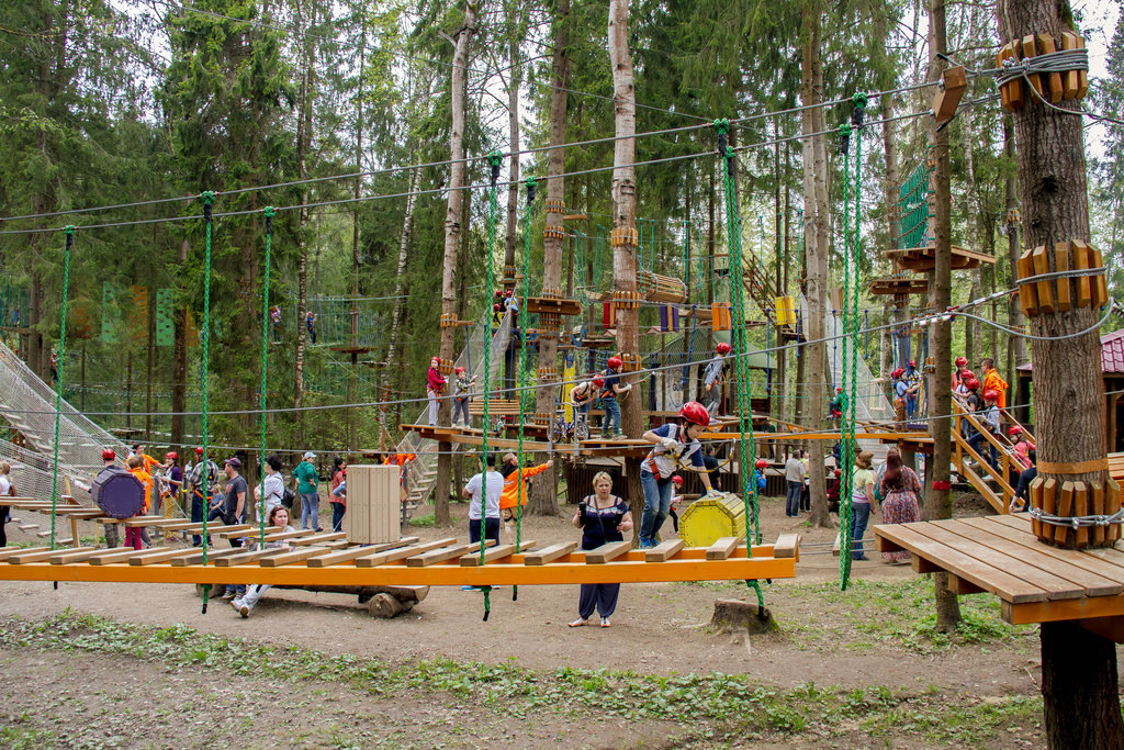 - Нравится экстрим и активность? Ставьте в приоритет верёвочные парки. В первую очередь обратите внимание на «Парк приключений Хотьково»: здесь соединены верёвочные трассы, лазертаг, гигантский батут, анимация, питание и аренда беседок на одной территории