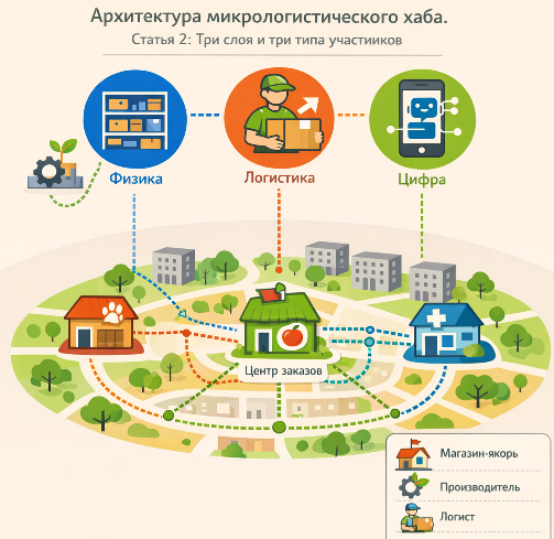 Важно: логистический слой превращает разрозненные точки в единую сеть. Без него хаб просто набор магазинов с общим чатом.