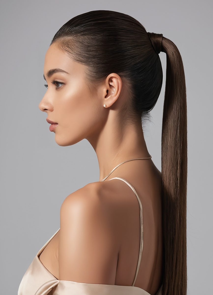 Для создания идеального хвоста воспользуйтесь расческой с редкими зубьями, чтобы не повредить структуру волос. Нанесите немного стайлингового геля или мусса для придания текстуры и фиксации формы. Если волосы тонкие, можно использовать пудру для объема. Соберите волосы в низкий хвост, аккуратно расправляя пряди, чтобы они выглядели аккуратно. Обмотка прядью добавит стильный акцент и скроет резинку, что сделает прическу более элегантной.