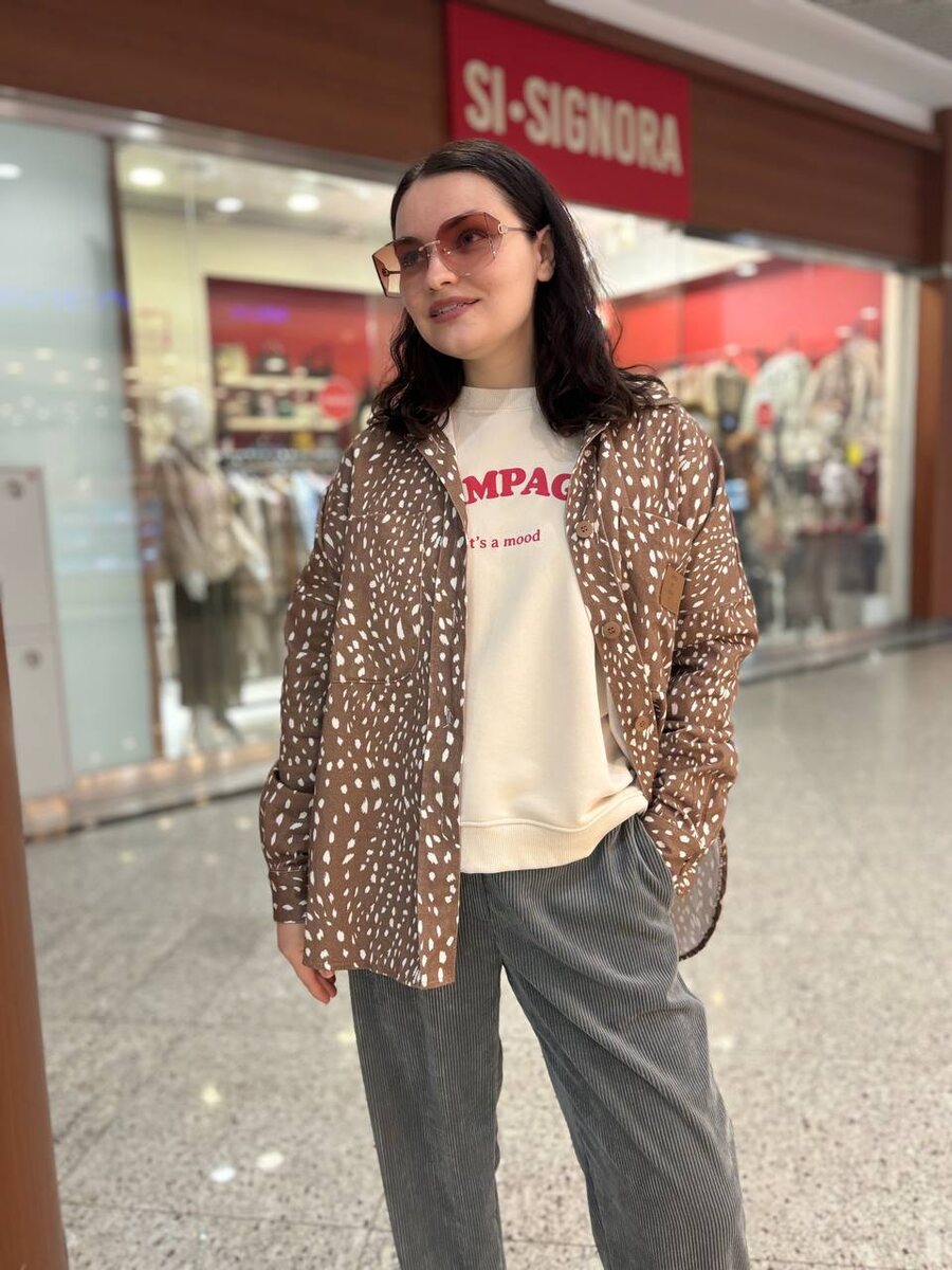 Яркий комплект от итальянских брендов с облегченной джинсовой курткой в анималистичном принте 🦌 Свитшот и вельветовые демисезонные брюки