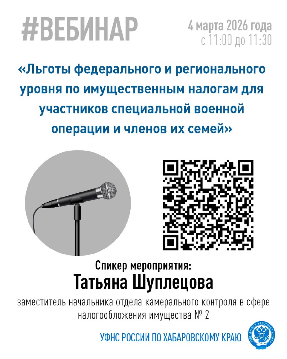 4 марта сотрудник краевого налогового управления проведет вебинар по теме: «Льготы федерального и регионального уровня по имущественным