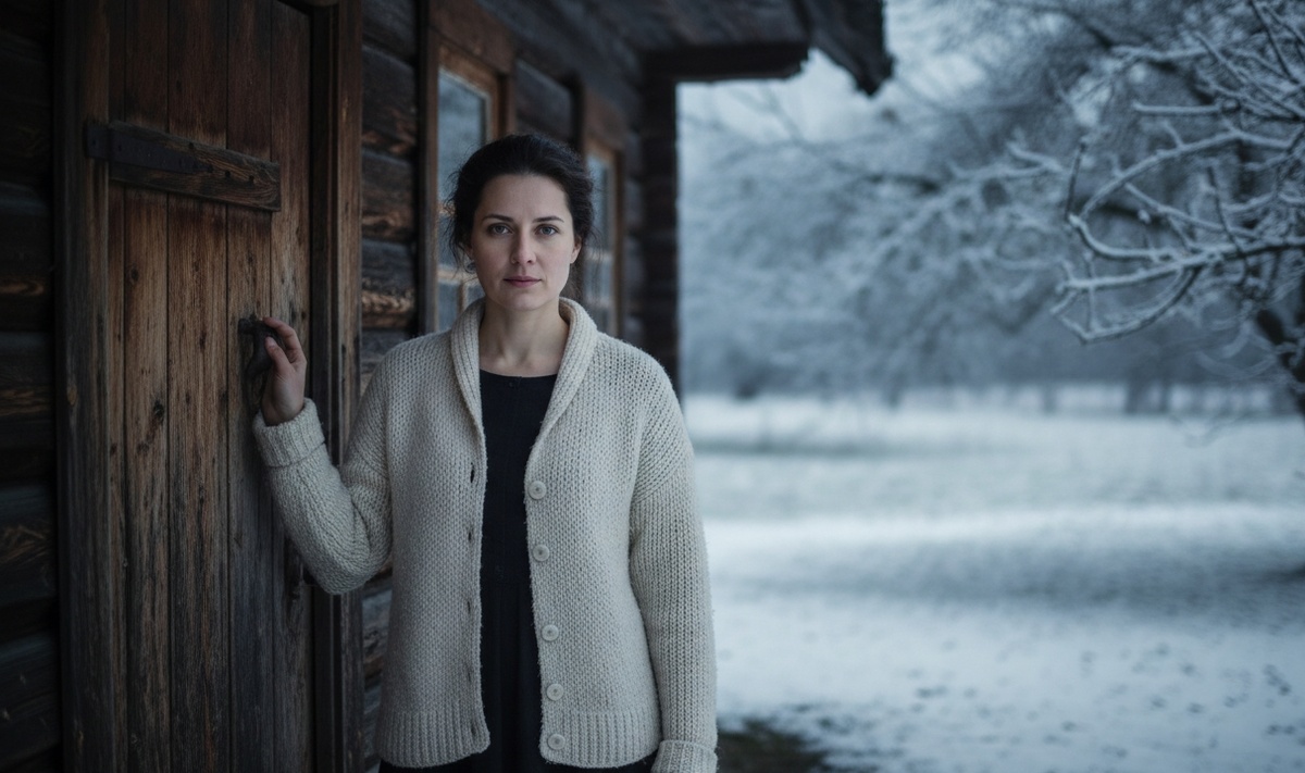 Потом вышла на крыльцо — постояла. Снег всё ещё шёл. Тихий, медленный, ложился на огород, на яблони, на старую скамейку у забора.