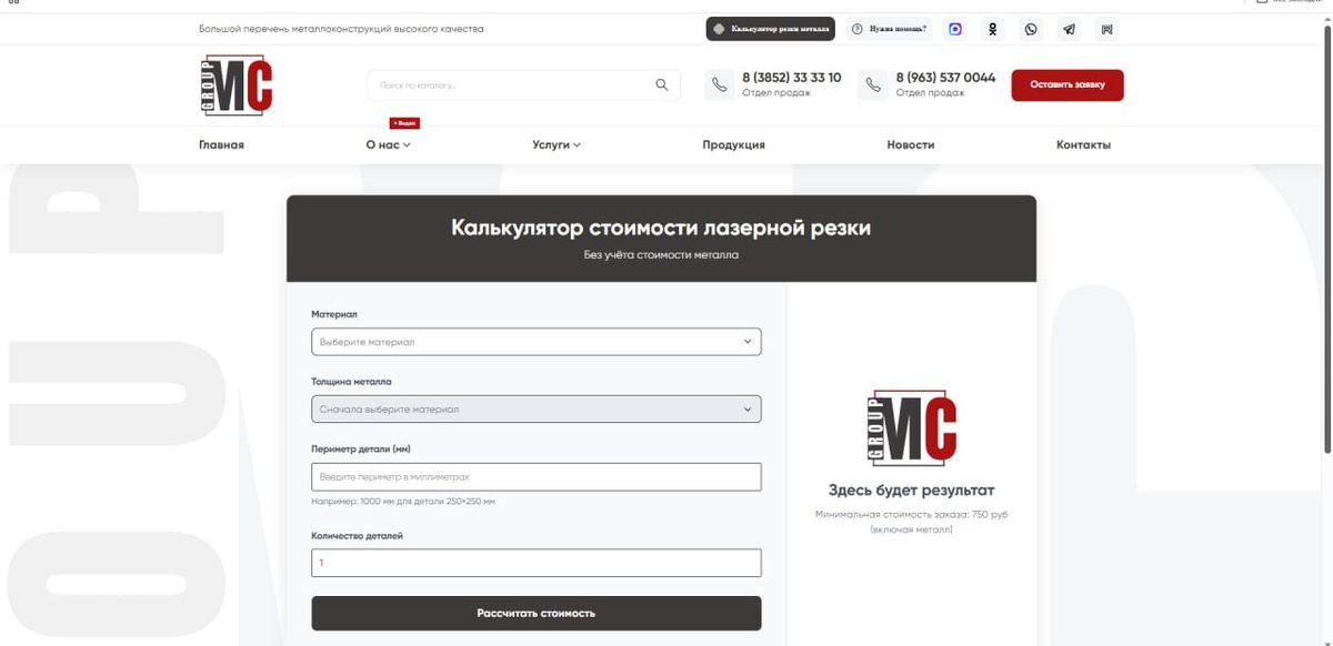 Коллеги, напоминаем Вам о том, что на нашем сайте mc.group вы можете получить предварительный расчёт стоимости лазерной резки листового