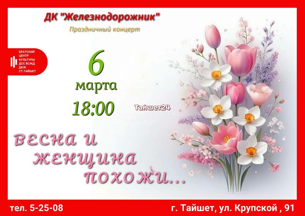 6 марта в 18:00 Дом культуры "Железнодорожник" приглашает на праздничный концерт, посвященный Международному женскому дню (3+)