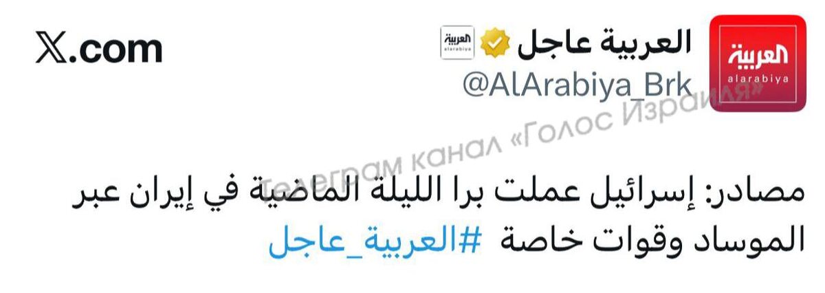⚡️⚡️Израиль провёл наземную операцию на территории Ирана, — Al Arabiya.