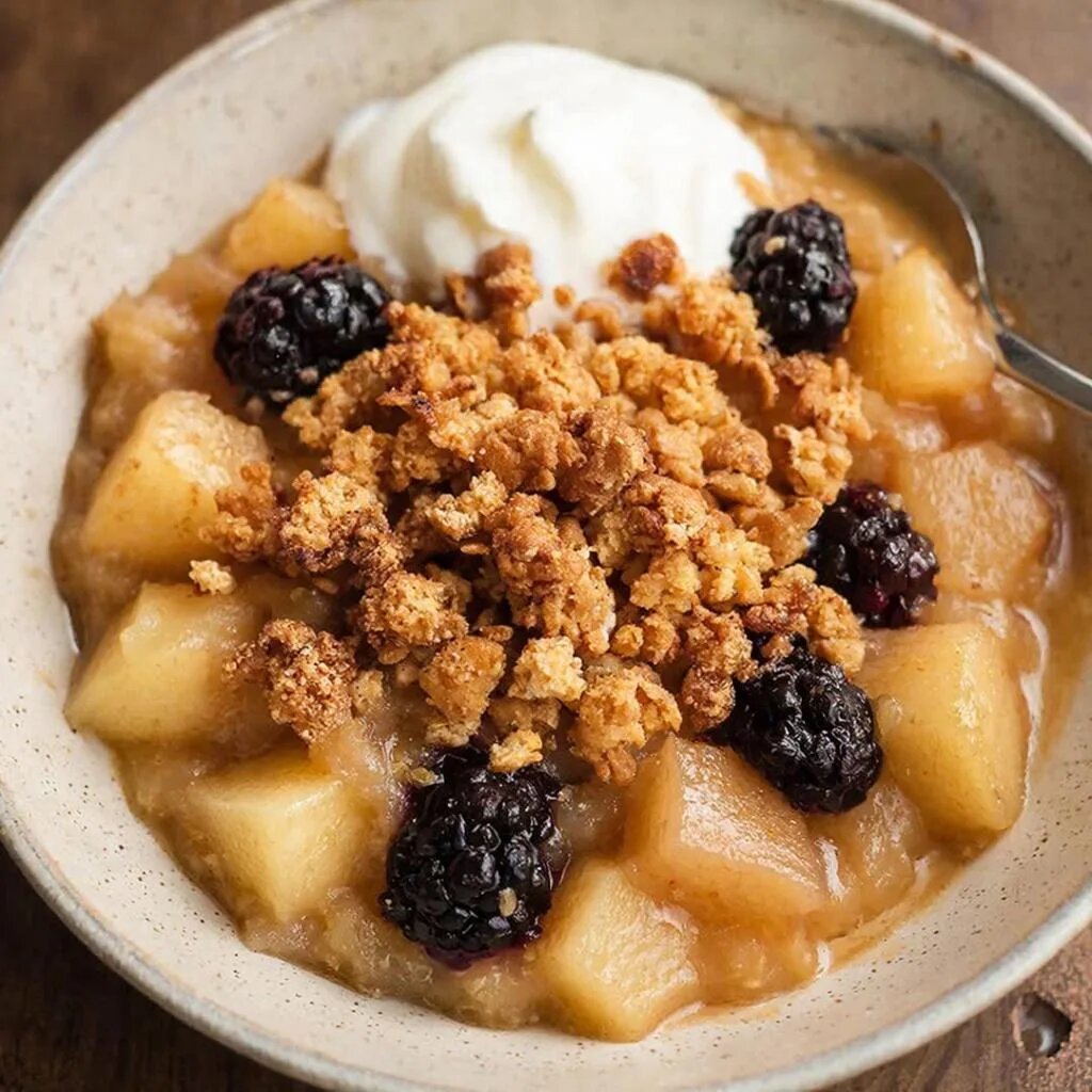 4. Подача: Подавать яблочные мюсли горячими со свежими сливками.
