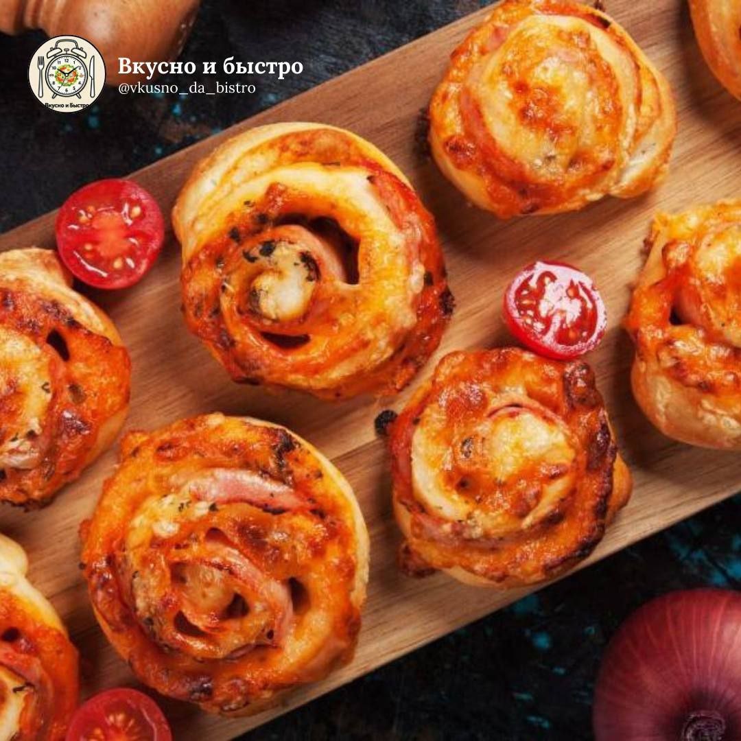 #закуска #35мин 🕒 Время приготовления 35 мин Порции 4-6 Сложность: средне 🧾 Ингредиенты: 🟠Соус для пиццы — 8 ст. л. 🟠Дрожжевое тесто — 500 г 🟠Пеперони (колбаски) — 120 г 🟠Моцарелла — 120 г 🟠Яйцо — 1 шт 🟠Орегано, базилик, перец — по вкусу 🍴Приготовление: 1. Тесто раскатайте в прямоугольный пласт и равномерно смажьте соусом для пиццы. 2. Выложите тонко нарезанные пеперони и моцареллу. Посыпьте орегано, базиликом и перцем. 3. Сверните пласт в плотный рулет и нарежьте кусочками шириной 3–4 см. 4. Разложите заготовки на противень с пергаментом, смажьте взбитым яйцом. 5. Выпекайте в разогретой до 220 °C духовке 15–20 минут до румяности. Вкусно и Быстро | Мы в Мах 📲