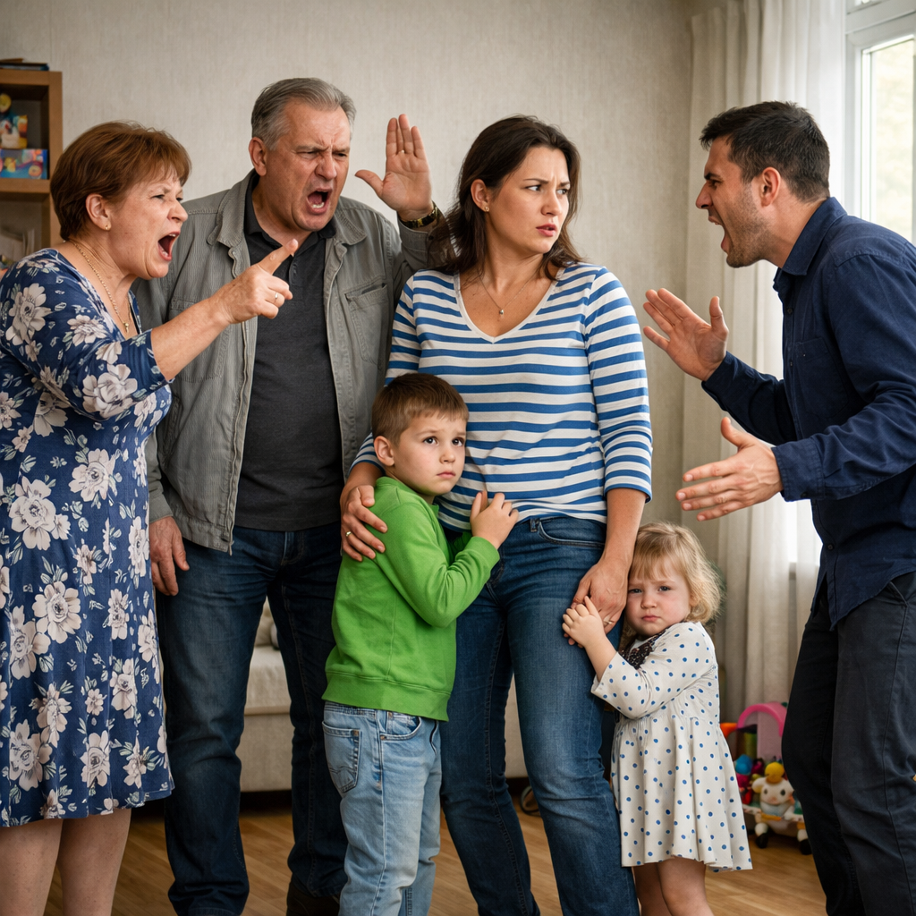 На пороге стояли Валентина Петровна и Пётр Николаевич — свекровь и свёкор, приехавшие из Краснодара без предупреждения, с двумя баулами и видом людей, которые точно знают: что-то здесь не так. Валентина Петровна — невысокая, плотная, с причёской, которую она не меняла лет двадцать пять, — уже смотрела поверх плеча Марии в глубину квартиры. Пётр Николаевич молчал. Он всегда молчал, но это молчание было из тех, что давит.