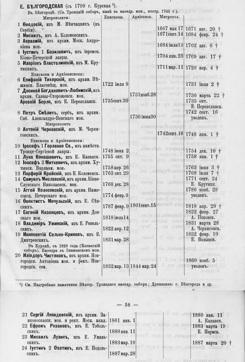 Митрополиты, епископы и архиепископы Белгородской и Курской епархий в 1667–1887 гг