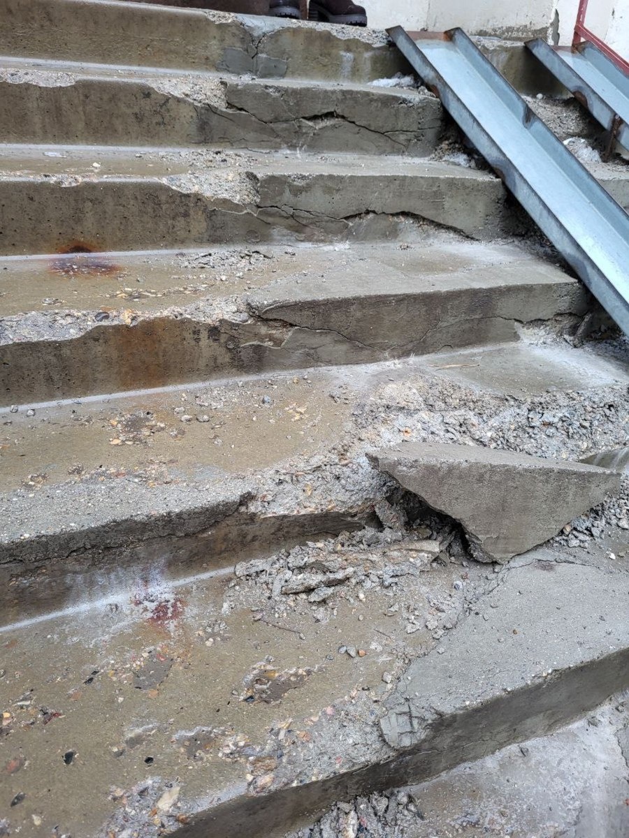 На ул. Гагарина 13 в 3 подъезде лестница уже настолько изношена, что ступеньки буквально разваливаются.