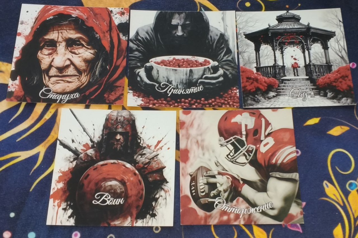 Этот расклад ( Старуха, Принятие, Сад, Воин, Отторжение) говорит о глубоком внутреннем конфликте и о том, что перемены назрели, но они будут связаны не с внешними действиями, а с изменением вашего отношения к работе и окружению. В отличие от предыдущего расклада с Нищетой и Сделкой, здесь нет прямой финансовой угрозы. Здесь идет борьба между мудростью и опытом, желанием покоя и готовностью к бою. Интерпретация расклада: 1. Фундамент ситуации (Старуха): Карта Старуха в позиции "прошлое" или "фундамент" говорит о том, что вы подошли к вопросу карьеры, опираясь на огромный опыт, мудрость и, возможно, усталость. Вы многое видели, многое знаете. Это может указывать на то, что на работе есть старший наставник, или что сама структура, в которой вы работаете, консервативна и держится на старых кадрах и традициях. Однако это также может означать, что ваши методы и подходы уже устарели. 2. Что происходит сейчас (Принятие): В настоящем вы находитесь в состоянии адаптации. Вы принимаете ситуаци