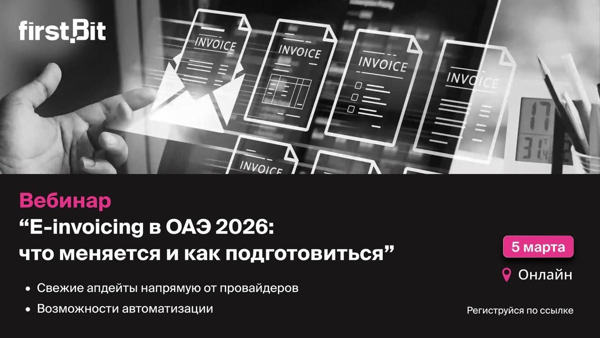 ” E-Invoicing станет обязательным только летом 2026, однако готовиться стоит уже сейчас. Обо всех нюансах расскажем на онлайн-вебинаре 5 марта в 10:00 по Дубаю. Разберём ключевые темы: • Что уже известно о введении e-invoicing в ОАЭ: сроки и требования к “первой волне” • Как будет выстроен обмен данными: последние апдейты от pre-approved провайдеров • Как изменятся процессы для компаний и за что будут штрафы • Как будет работать электронное выставление счетов-фактур в FirstBit ERP Организатор — Первый Бит, крупнейший партнёр 1С на Ближнем Востоке. Более 13 лет опыта и 2 000+ клиентов в Эмиратах. Продукты First Bit помогают бизнесу вести бухгалтерский и налоговый учет, регулярно адаптируясь под все изменения законодательства ОАЭ. 👉 Регистрация по ссылке #Реклама #НаПравахРекламы