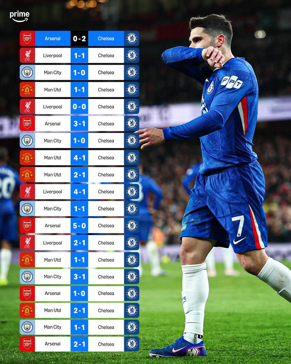 "Челси" не выиграл ни одного из 18 последних выездов к "Арсеналу", "Манчестер Сити", "Манчестер Юнайтед" или "Ливерпулю" в Премьер-Лиге. Эта серия продолжается с августа 2021 ❌