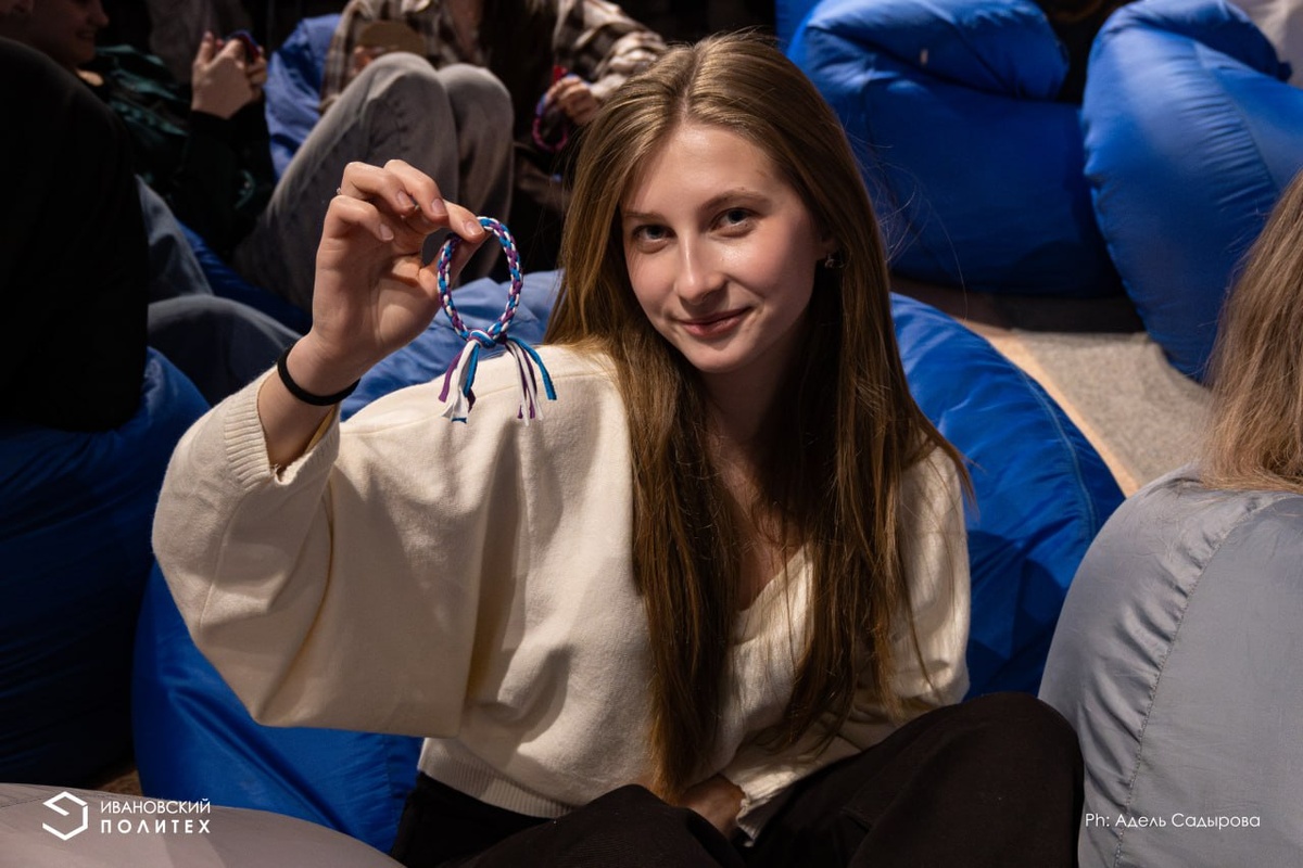 Очередной мастер-класс прошел в Эко-мастерской добра. 25 февраля студенты Политеха мастерили браслеты дружбы — но не простые, а из пряжи из старых футболок. Ребята сплели браслеты и сразу подарили их друзьям с пожеланиями исполнения желаний. А фоном для увлекательного процесса шел мультфильм о народах России. 🫶 Было весело, душевно и по‑настоящему вдохновляюще! Делитесь фото браслетиков в комментариях❤️ 👻 ИВГПУ в MAX | 📲 ИВГПУ в ВК 👻 Приемная комиссия ИВГПУ