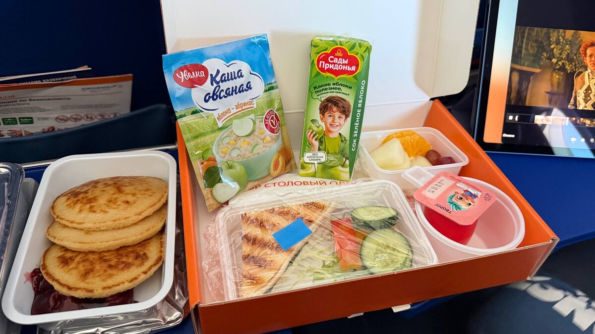 Думаю, все, кто хоть раз летал с детьми, знают, что в самолёте можно выбрать специальное питание. Но на всякий случай напомню — и расскажу, как это работает. Да, можно заказать не только детское меню, но и: — вегетарианское — халяльное — и другие спец-меню Например, в Аэрофлоте раньше даже было «русское меню» 😅 👉 Всё это обычно выбирается на сайте авиакомпании или можно заказать через колл-центр Мы уже заказывали детское меню в Emirates и Аэрофлоте, было прикольно и вкусно На китайских авиалиниях не пробовала, но в целом такая опция есть почти у всех крупных перевозчиков. Чем детское меню отличается — его приносят раньше основного питания — оно в отдельной коробочке, обычно симпатичной и «детской» — еда более простая и понятная для ребёнка В Аэрофлоте, например: растворимая каша, блинчики / вареники / простые блюда, сыр, сендвич, сок На обратном пути у всех была гречка и пюре с мясом в соусе, а у Макса в детском наборе — макарошки с фаршем. В итоге Макс съел мою гречку, а я с удо