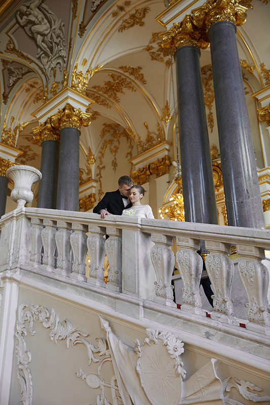 Ваши чувства на фоне великой классики. Эрмитаж считается символом вечной любви и искусства, и на это есть, как минимум, три причины. ИСТОРИЧЕСКОЕ НАСЛЕДИЕ Эрмитаж хранит искусство тысячелетий, показывая, как культура и красота переживают века. АРХИТЕКТУРА И ИНТЕРЬЕР Великолепие залов и коридоров создают атмосферу чистой эстетики, связанной с вечными ценностями. ТВОРЕНИЯ ВЕЛИКИХ МАСТЕРОВ Коллекция картин и скульптур символизирует непреходящую страсть к искусству и его способности объединять людей. Эти факторы делают Эрмитаж идеальным местом для воплощения идеи вечной любви через искусство. Свадебный фотограф Анна Бажанова: «Пара из Москвы, влюблённая в Петербург и его дворцовую стилистику, решила провести свадьбу именно здесь. Съёмка в Эрмитаже обошлась в 5000 рублей плюс три входных билета по 1500. Плюсы: бесконечная эстетика и неповторимость места, историческая и культурная ценность, доступная цена. Минусы: большое количество людей, сложный свет и невозможность использования вспышки.