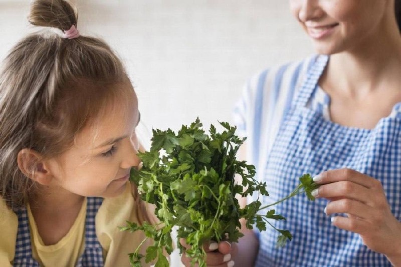 ? — Для начала в меню ребенка можно использовать укроп. Этот зеленый овощ можно добавлять в еду начиная с 8 месяцев, так как он помогает улучшить аппетит и пищеварение — Петрушка богата витамином С и кальцием, поэтому ее следует включать в детский салат, когда ребенку исполнится год — Сельдерей является настоящим супер-фудом для детей и взрослых. Его можно добавлять в еду начиная с 9-10 месяцев, так как он содержит органический натрий, магний и железо, калий, фосфор.