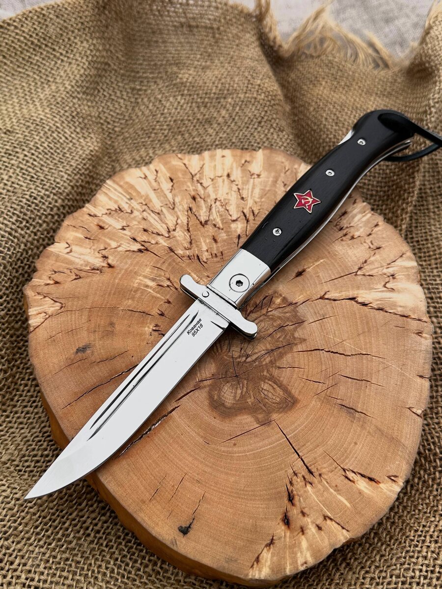! ⠀ 🔹 Сталь 95Х18 (крио) — отечественная нержавеющая, устойчива к излому, долго держит заточку и не требует сложного ухода. 🔹 Клинок сверхострый — заточка «в бритву», твердость 58 HRC. 🔹 Рукоять — черный граб с эмблемой красной звезды: стильно, надежно, с историческим характером. 🔹 Надежный замок Back-lock — фиксирует лезвие во всех рабочих положениях. 🔹 В комплекте — ножны из натуральной кожи (формованные — по запросу, доплата +8000 руб). ⠀ Подходит для: — коллекционеров — любителей истории — ежедневного ношения — подарка мужчине ⠀ Цена: 13 147 руб. ⠀ 📲 Заказать — напишите [@Nazarklinokbot](https://t.me/Nazarklinokbot) или WhatsApp [Max +7 (910) 134-38-31](https://wa.me/79101343831) ⠀ *Нож ручной работы. Пожизненная гарантия на отсутствие производственных дефектов.* ⠀ #нож #финканквд #складнойнож #ножручнойработы #95х18 #подарокмужчине #КузницаНазарова
