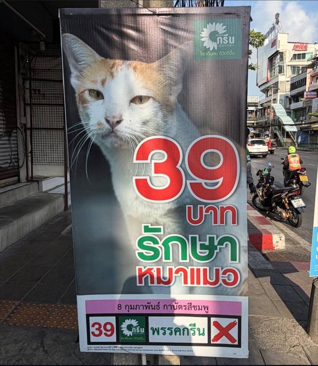 Перед выборами в парламент 8 февраля партия «зелёных» разместила в городе агитационные плакаты с изображением кота. Так политики продвигают идею страховки для домашних животных с лимитом 39 бат — около 100 рублей. Ранее власти страны сделали национальными символами пять пород кошек и признали их значимым фактором экономики — в Таиланде активно развивают рынок товаров для питомцев и кошачий туризм. Голосуем за рыжего? 📸 соцсети 📌 Подписаться на Москва FM / Наш чат-бот / Мы в MAX
