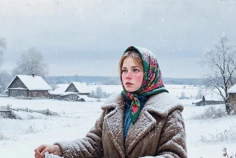 Это была Зина, подружка Оли - бойкая и весёлая девушка. Её тулуп, несмотря на мороз, был нараспашку, а русые кудряшки выбивались из-под цветастого платка.
