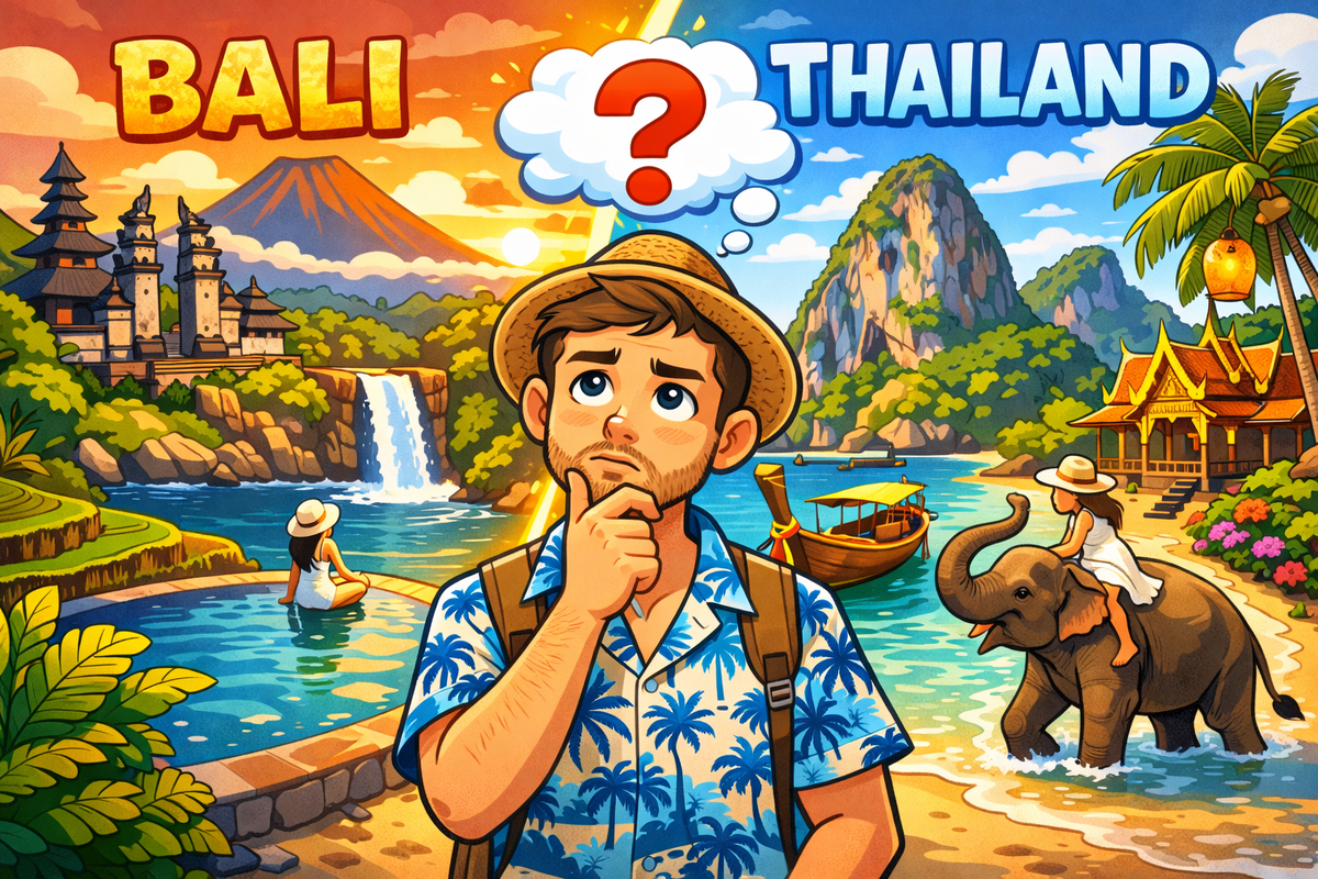 Если на одном острове шторм, можно выбрать другой регион. С точки зрения адаптации к климату Таиланд для многих переносится легче. Бали — это драматичные пейзажи, чёрный и золотой песок, серфинг, закаты.