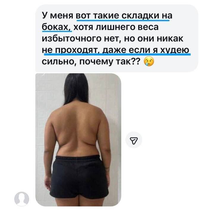 И она очень простая: качать только мышцы пресса и спины. Давайте разберёмся, почему это не работает? На самом деле, бока - это защита нашей поясницы. Если у вас таз выдвинут чуть вперёд, а плечи немного сутулые, то мышцы живота и спины просто не включаются полностью, и поэтому спина «собирается» в ту самую складку, а живот выпирает. То есть наше тело таким образом создает дополнительную опору, буквально «подушку безопасности», чтобы удержать позвоночник и не дать спине болеть. Если вы заметили, что: • плоские ягодицы, даже если вы их качает е • есть даже незначинательная сутулость • мучаетесь отёками и болями в спине/пояснице • есть «ушки» на бёдрах то скорее всего у вас есть и складки, так как ваше тело таким образом создает баланс. И тут возникает закономерный вопрос: что тогда делать?😒 Отложите массажные банки, пояса для похудения из собачьей шерсти и аппликатор Кузнецова 😅 и добавьте в тренировки упражнения на: - активацию тазобедренных суставов - для осанки и грудного отдела -