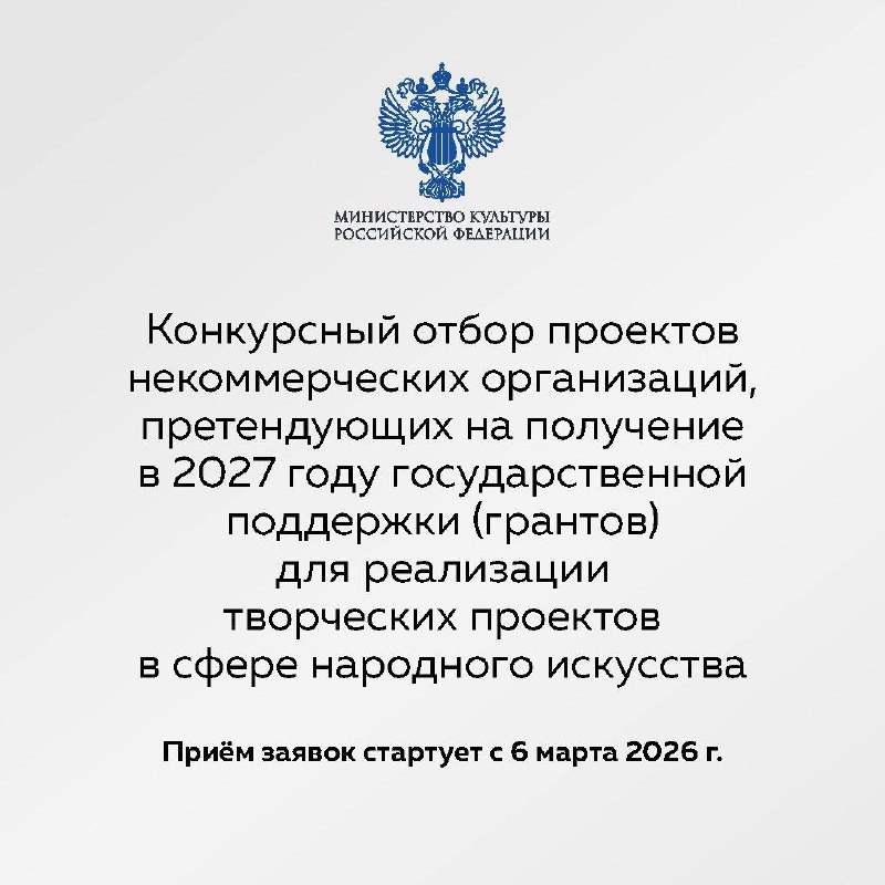 🇷🇺С 6 марта стартует приём заявок на гранты Минкультуры России для проектов в сфере народного искусства на 2027 год