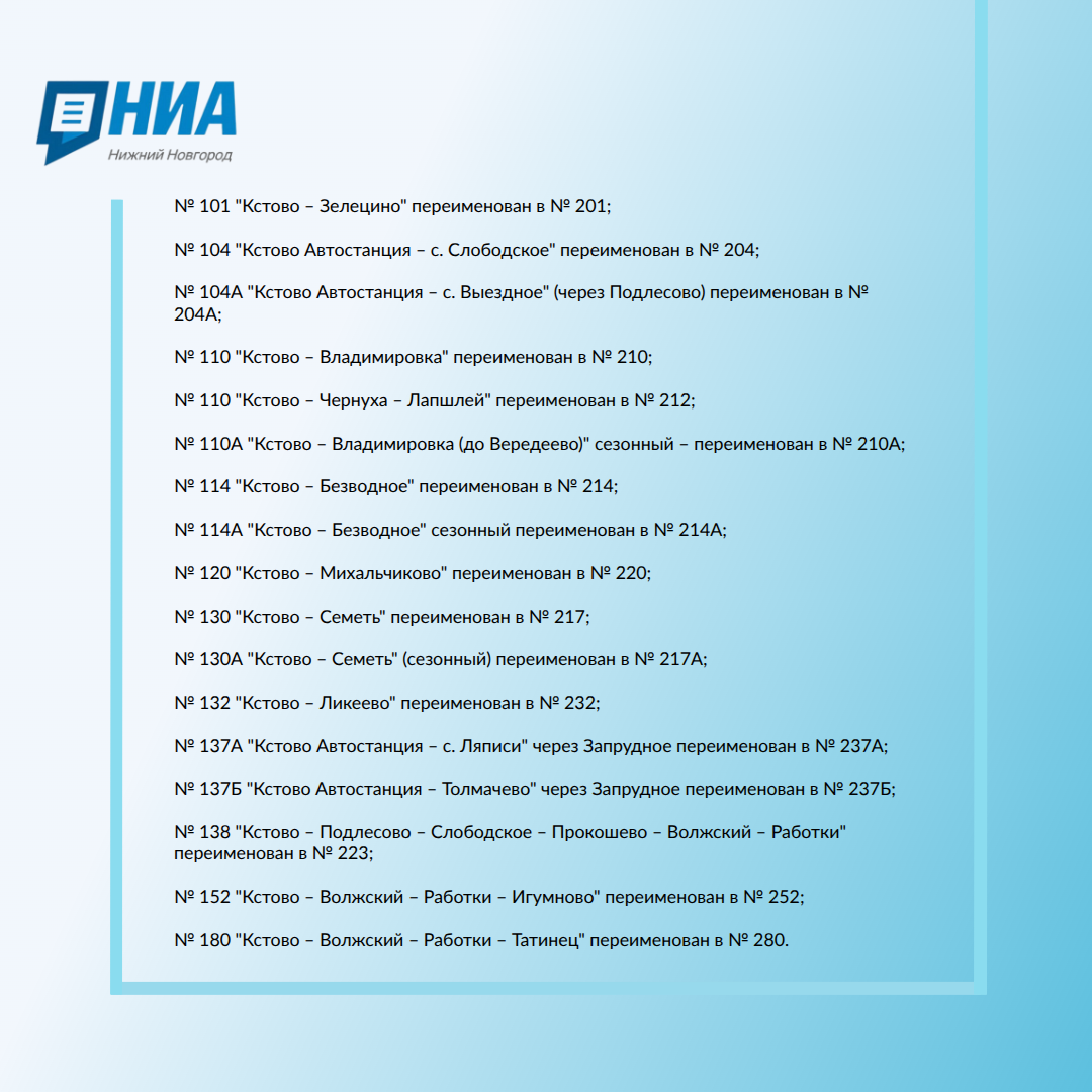 Изменены номера 17 автобусных маршрутов в Кстовском районе: список