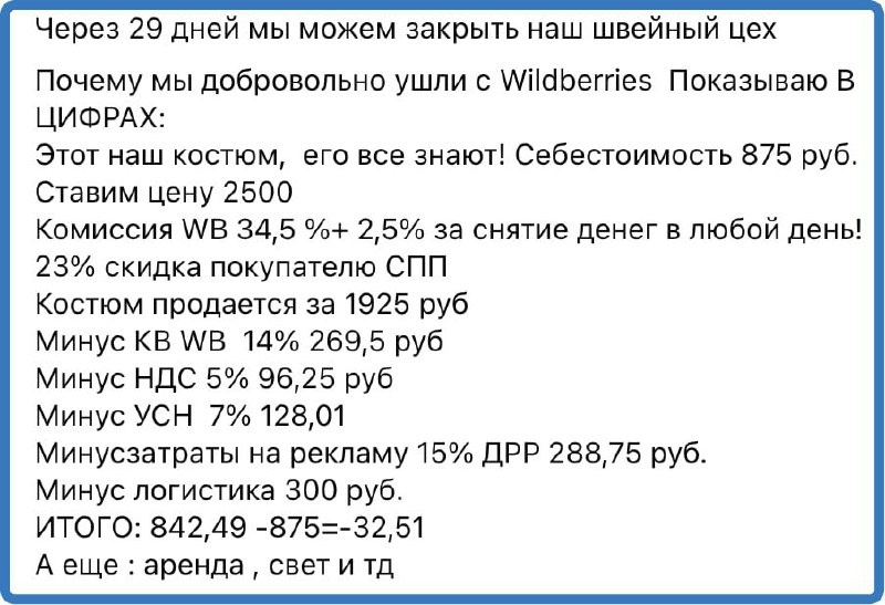 Реали продаж одежды на маркетплэйсах, сшитой в собственном швейном цеху . ( Нашла на просторах Интернета) P.D. ой с 1 марта уже нельзя использовать иностранные слова. Реали= актуальная ситуация Маркетплэйс = площадка для продажи товаров в Интернете 😉