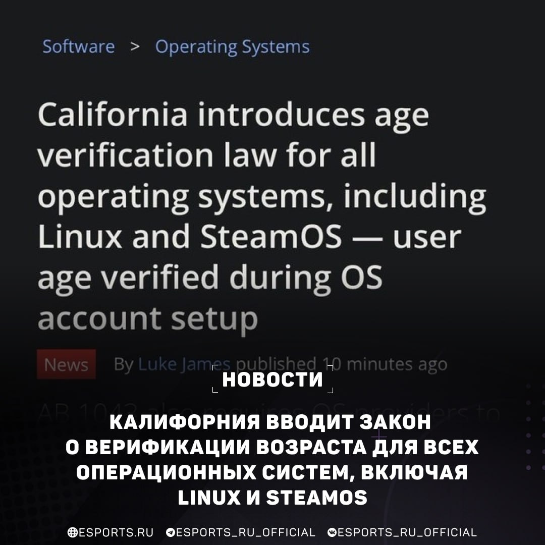 ‼️ Калифорния вводит обязательную верификацию возраста для Steam