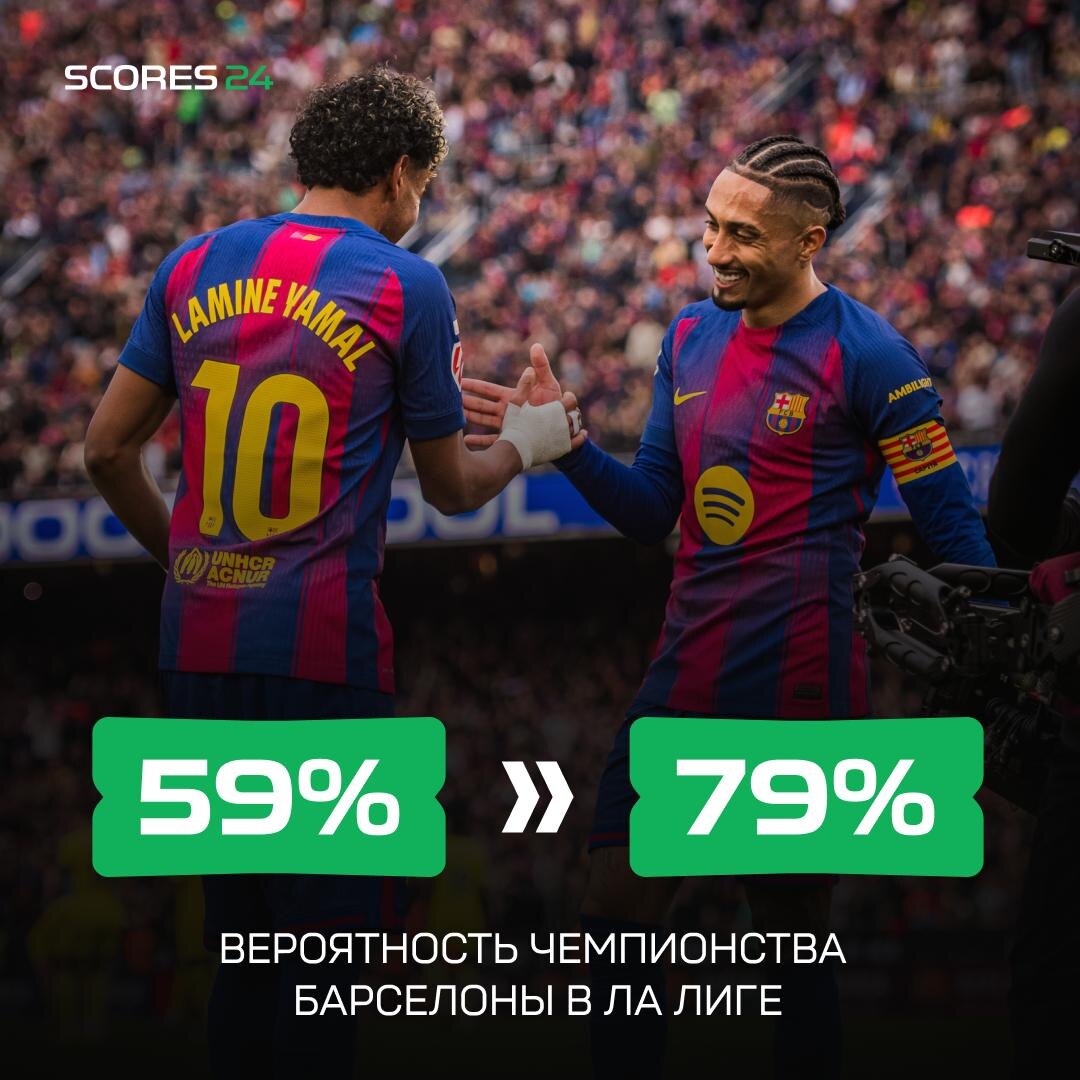 😰 После этого конфуза суперкомпьютер Opta обновил расклады, и новости для Мадрида так себе — шансы «Реала» на чемпионство рухнули до 20%. Обидное поражение стоило «сливочным» не только очков, но и веры аналитиков. 🔥 «Барселона» имеет почти 80% шанса на титул! Кажется, каталонцы уже могут потихоньку присматривать место для чемпионского парада, если не начнут чудить на ровном месте. 👻 Фантомные шансы. У «Атлетико» (0,1%) и «Вильярреала» (0,02%) тоже «всё под контролем». Вероятность их чемпионства примерно такая же, как встретить динозавра, но Opta вежливо оставила их в списке — чисто для массовки. Вся развязка теперь ждет нас 10 мая в Эль-Класико. Либо Мадрид сотворит чудо, либо «Барса» официально закроет вопрос с золотом. Как думаете, кто в итоге станет чемпионом? 🤔 ❤️ — 🇪🇸 🔥 — 🇪🇸