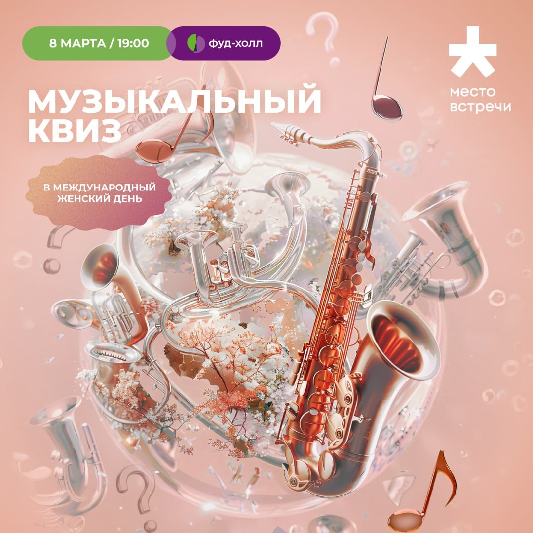 Весна бывает нежной, яркой, дерзкой — а какой будет ваш вечер? 🌼 Приходите 8 марта на фуд-холлы в наших районных центрах — будем играть, смеяться и встречать праздник как следует 🍸 Вас ждут: 🟢 Интересные задания и неожиданные раунды 🟢 Подарки и весеннее настроение 🟢 Любимая еда и напитки прямо на фуд-холле 🔸 8 марта | 19:00–21:00 Билет в игру: чек от 500 ₽ с фуд-холла (с человека) Команда: 4–6 человек Зовите подруг, коллег или свою вторую половинку — и регистрируйтесь по ссылкам в удобную локацию: 📍 «Место встречи София» 📍 «Место встречи Орбита» 📍 «Место встречи Первомайский» 📍 «Место встречи Витязь» 📍 «Место встречи Ангара» 📍 «Место встречи Киргизия» 📍 «Место встречи Янтарь» 📍 «Место встречи Будапешт» Будет весело и по-праздничному! 💐