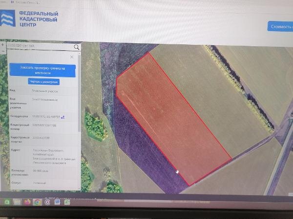 Название: Земельный участок кадастровый номер 22:05:020109:1188 общей площадью 8,6 га местоположение: Российская Федерация, Алтайский край