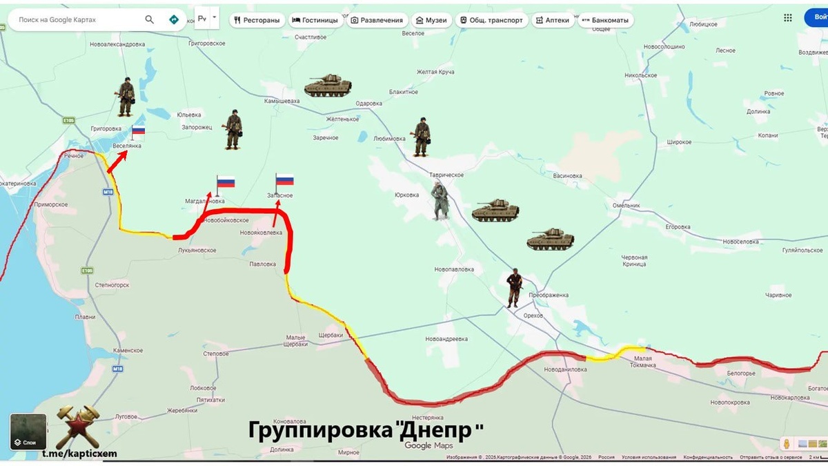 МО РФ: Подразделения группировки войск «Днепр» в результате активных и решительных действий освободили населенный пункт Веселянка Запорожской области. Очень важное тактическое приобретение схемы и карты