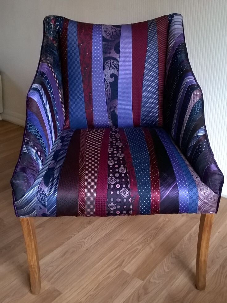 пришить галстуки к однотонной ткани (чёрной, серой, синей), создавая контрастные акценты.