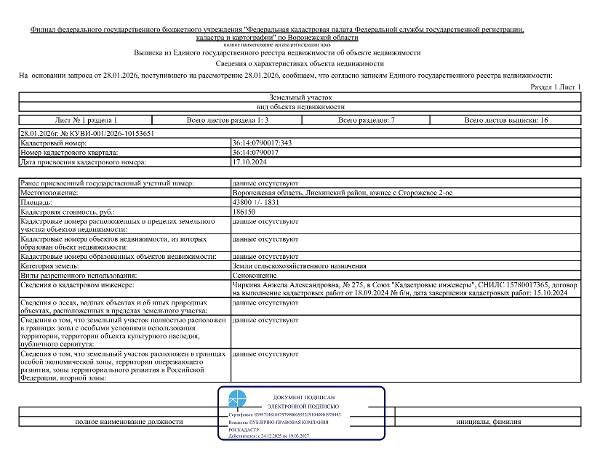Название: земельный участок расположен по адресу: Воронежская область, Лискинский район, южнее с Сторожевое 2-ое, с кадастровым номером
