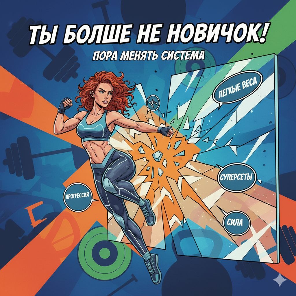 Но сегодня хочу обратить внимание, что не менее важно заметить, когда этот шаг превратился в уверенную походку. 🚀 Ты больше не «новичок» или 5 признаков того, что пора переключать передачу Вчера ты пряталась на беговой дорожке, а сегодня... Грань между «новичком» и «бывалым» размыта, но есть чёткие маркеры того, что адаптация закончилась и пора ставить новые цели. Проверь себя по этому чек-листу: 1. Тренажеры перестали быть страшными и непонятными железяками. Если ты подходишь к любому снаряду и понимаешь, как его настроить под свой рост, не читая инструкцию на раме - поздравляю! 2. Ты знаешь, какая мышца работает и чувствуешь её, а не просто «всё болит, ничего не помогает» - это развилась нейромышечная связь. Твой мозг наконец-то провёл интернет к мышцам. Поздравляю²! 3. Техника стала автоматической 💪 Раньше ты держала в голове список из 10 пунктов: «спина прямая, локти прижаты, пятки в пол...». Теперь тело само принимает нужное положение. Ты не думаешь о том, как стоять, ты дума