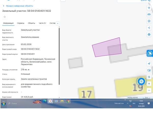 м, расположенного по адресу: Российская Федерация, Пензенская область, Белинский район, с. Лермонтово, разрешенное использование: для ведения личного подсобного хозяйства. Канал: Госземля Пензенская область Область: обл Пензенская Район: м.р-н Белинский Населенный пункт: с.п. Лермонтовский сельсовет, с Лермонтово Локация: Смотреть на карте ВРИ: Ведение личного подсобного хозяйства на полевых участках Кадастровый номер: 58:04:0140401:1632 Кадастровая стоимость: - Вид сделки: Аренда Площадь: 218 м² Начальная цена: - руб. Дата завершения: 31.03.2026 Подробнее: ГИС ТОРГИ #госземля #земляотгосударства #земля #земельныйучасток #земельныеторги #торги #аукцион #арендаземли #аренда #пензенскаяобласть