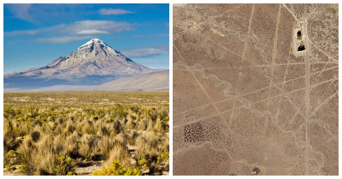Западные равнины Боливии хранят тайну, которую невозможно разглядеть с земли. Высокогорное плато Альтиплано исчерчено тысячами идеально прямых линий. Они не складываются в фигуры животных, как знаменитые геоглифы Наски в соседнем Перу, но поражают иначе своей геометрической точностью. Некоторые из этих лучей уходят за горизонт, протянувшись на десятки километров через холмы, россыпи камней и заросли кустарника. Древние зодчие работали с невероятной тщательностью, ведь местность здесь отнюдь не равнинная. Линии, названные по имени величественного вулкана Невадо-Сахама, высочайшей точки Боливии, теряются в его тени. С поверхности это просто неприметные тропы, которые легко не заметить. И только с высоты птичьего полёта открывается истинный масштаб самого грандиозного художественного полотна доисторической эпохи. Ширина каждой линии невелика и варьируется от 1 до 3 метров. Но длина самых протяжённых достигает 20 километров. Технология создания проста и гениальна. Древние мастера счищали т
