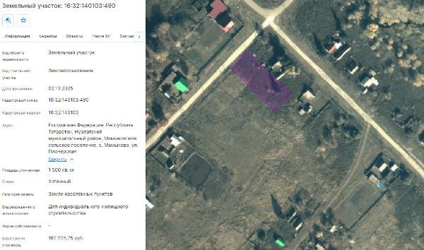 Название: Земельный участок из земель населенных пунктов с кадастровым номером 16:32:140103:490 площадью 1500 кв.м., расположенного по