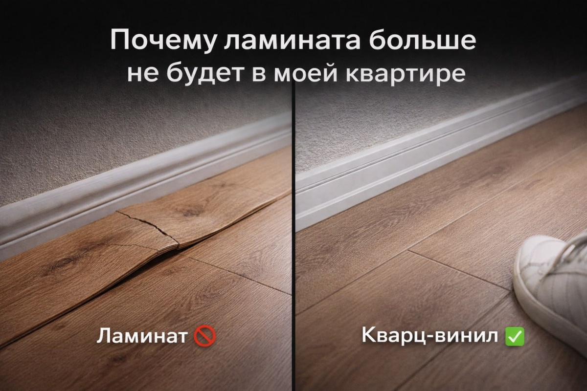 Звучит резко? Но это решение после десятков объектов. Вот что происходит с ламинатом через 2–3 года: ▪️ Вздутие от влажности Даже аккуратная уборка не спасает. ▪️ Скрип и люфты Замки разбиваются. Пол начинает «жить своей жизнью». ▪️ Локальный ремонт невозможен Повредили одну планку — разбираем половину комнаты. Теперь сравним с кварц-виниловой плиткой ПВХ: ✅ Не боится воды ✅ Тихая при ходьбе ✅ Устойчива к нагрузке ✅ Можно заменить один или несколько элементов без разбора всего пола. Разница не в моде. Разница в сроке службы и нервах. Ламинат — это привычка. Кварц-винил — это расчёт. Я выбираю материалы, которые работают, а не те, к которым «все привыкли». Если планируете ремонт — 📲 НАПИШИТЕ НАМ 👈 Подберём покрытие под Ваш объект, без ошибок и переплат.