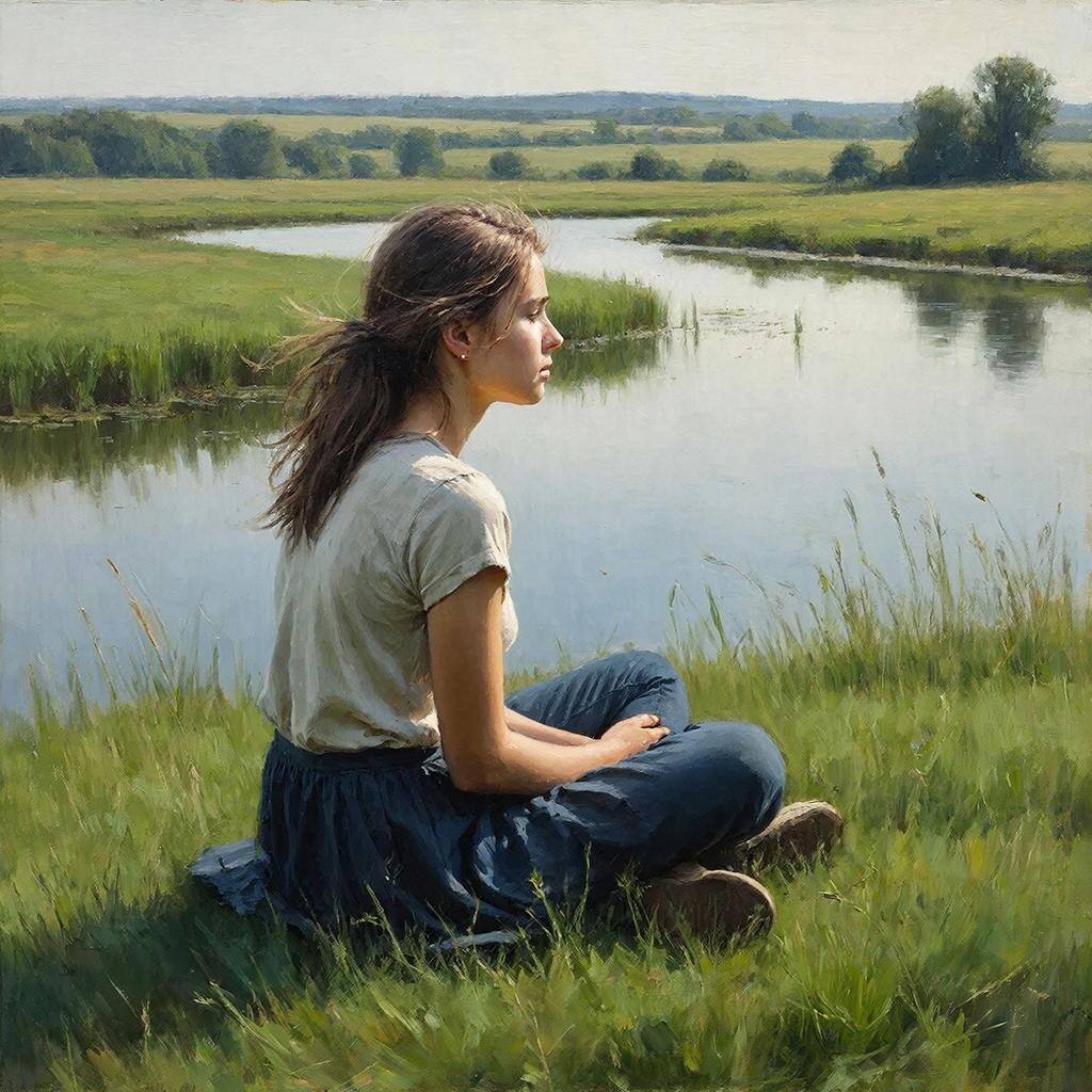 С грустью думала Наташа о том, что лето заканчивается. А с ним уходит и её детство. С сентября начинается учёба. Она смотрела на низенькие деревенские дома, на длинную речушку, в которой плавали с весёлым кряканьем утки, тревожа заросли камышей. За речкой тянулись ленты полей и высящиеся у горизонта линии лесов. Теперь вся эта красота окажется за сотни километров, поэтому Наташа наслаждалась радостными мгновениями, сидя на траве и вглядываясь вдаль.