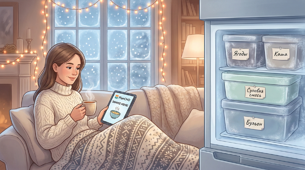 Зима в этом году проверяла нас на прочность: морозы, ветра, бесконечные сопли у детей и традиционный февральский упадок сил у родителей. Но знаете, что меня спасло? Планирование. Рассказываю, как PlanCHO стал моим главным союзником в борьбе с сезонным хаосом. Проблема 1: Когда все болеют, а готовить надо 🤧 Температура у троих детей, сама на таблетках, а муж в командировке. Вопрос «что приготовить?» звучит как издевательство. Руки опускаются, сил нет даже на бутерброд. Как помог PlanCHO: Ещё в ноябре я создала в программе отдельное меню. Туда вошли: · Куриный бульон (замороженный порционно в «пакетах») · Кисели и морсы (ягоды заморожены с осени) · Лёгкие супы-пюре (овощные заготовки в морозилке) · Каши быстрого приготовления (крупы расфасованы по порциям) Когда кто-то заболевал, я не металась в панике по магазинам. Я просто за 15 минут собирала полноценный обед из заготовок. Никакой чистки овощей, никакой беготни. Только достать пакет и разогреть. ❄️🍲 Проблема 2: Зимой хочется уюта,