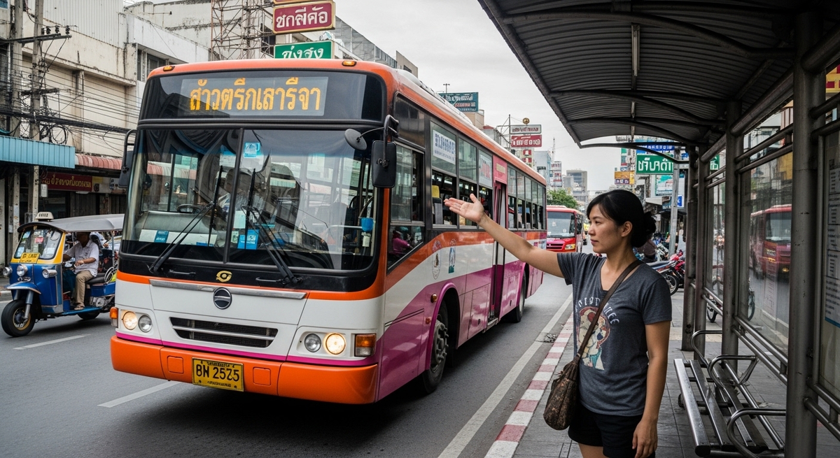 Когда нужный автобус приближается, необходимо подать водителю чёткий жест рукой. Остановки в Бангкоке зачастую короткие, особенно в часы пик, поэтому важно быть внимательным и действовать быстро. Автобусы не всегда останавливаются автоматически, если никто не подаёт сигнал.